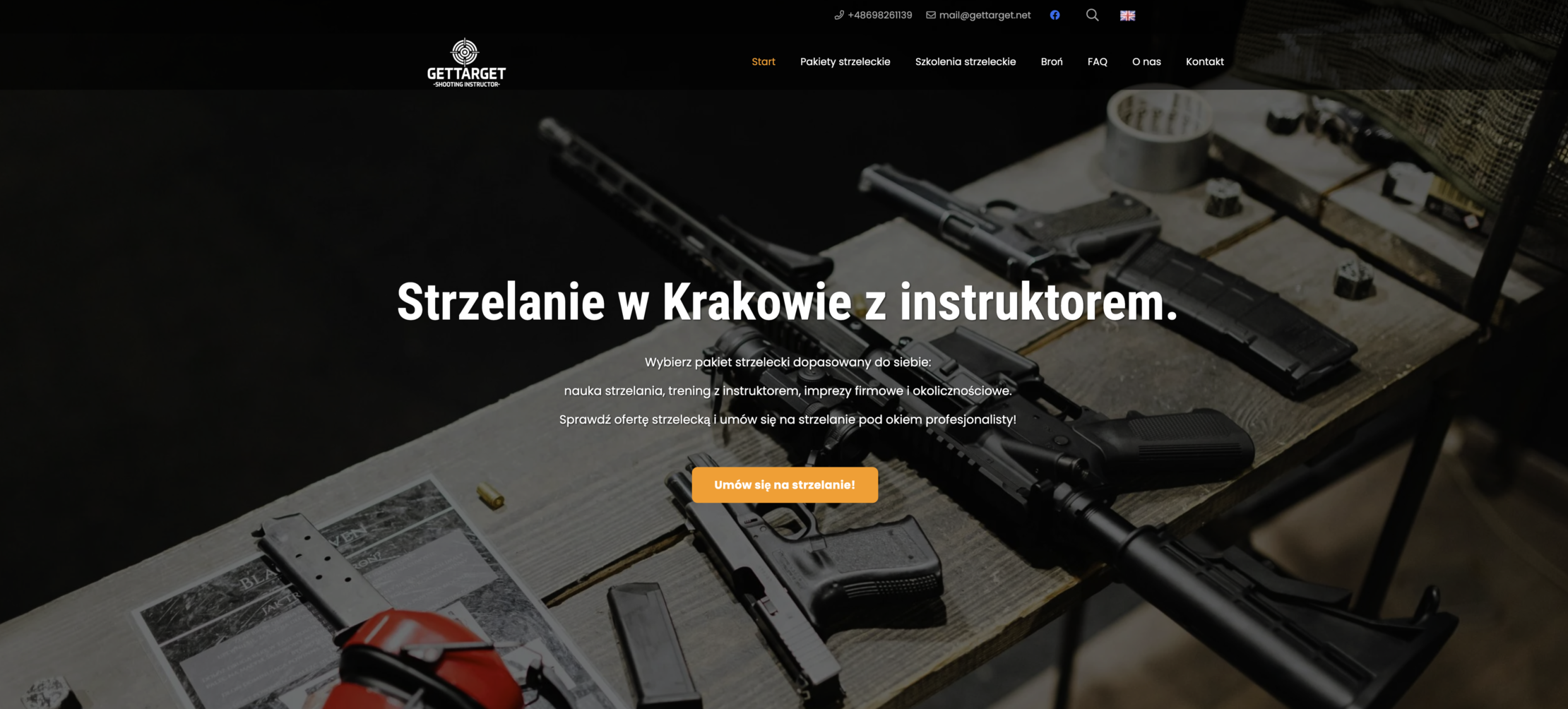Stworzenie spójnej identyfikacji (logo + wizytówki + naklejek) oraz strony WWW promującej ofertę pakietów strzeleckich, szkoleń i eventów. Kluczowe było połączenie emocji (adrenalina, frajda) z przekazem o bezpieczeństwie, profesjonalizmie i edukacji oraz przygotowanie strony pod zapytania lokalne (Kraków) i rezerwację. Oferta obejmuje m.in. naukę strzelania, trening z instruktorem oraz eventy.